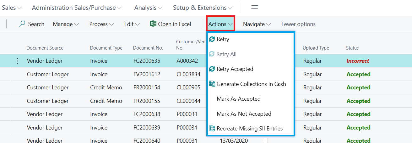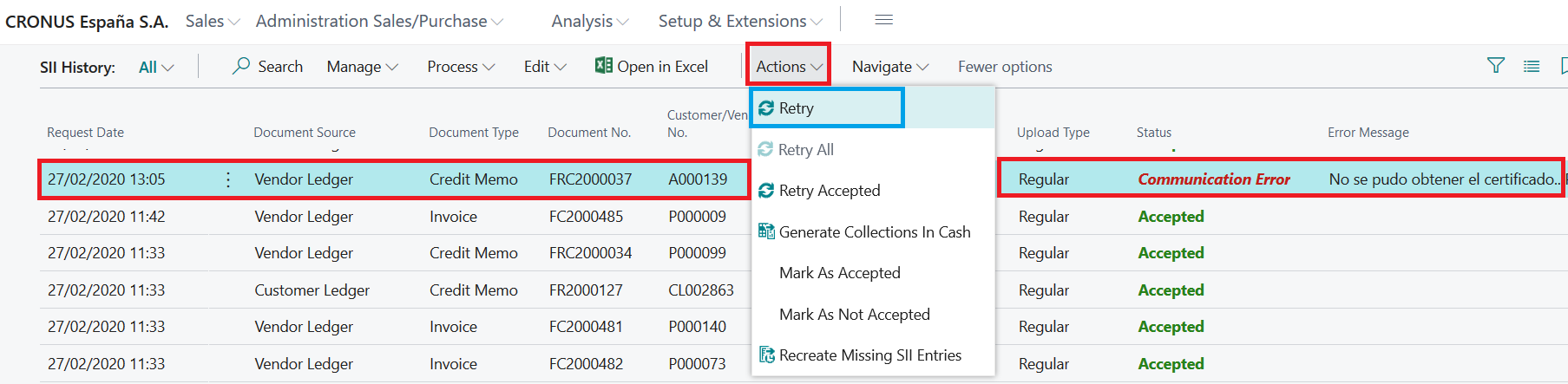 - Reintentar aceptado. Como su nombre indica, reenvía las facturas aceptadas de nuevo.