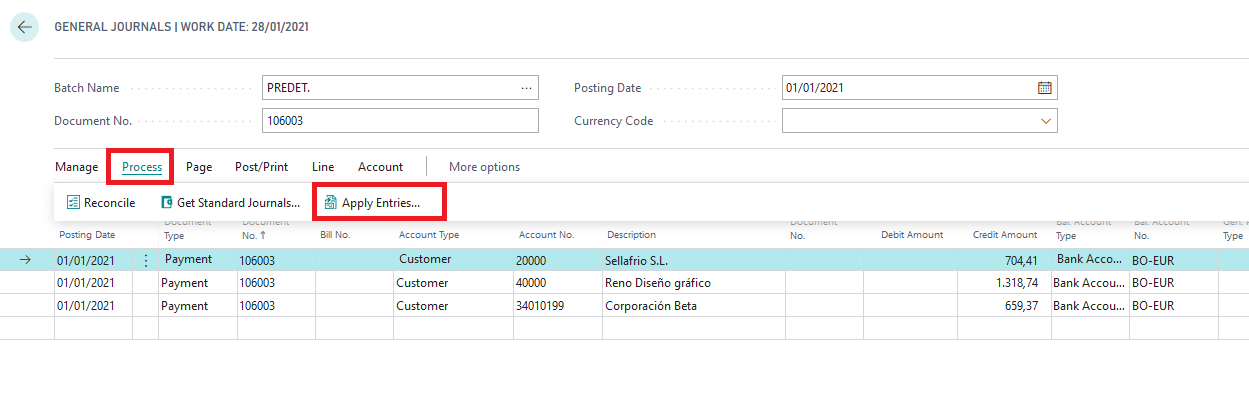 Después de realizar esta misma operación con el resto de líneas, podremos registrar el diario, de modo que nuestra conciliación ya tendrá los movimientos de pago que nos faltaban por completar.