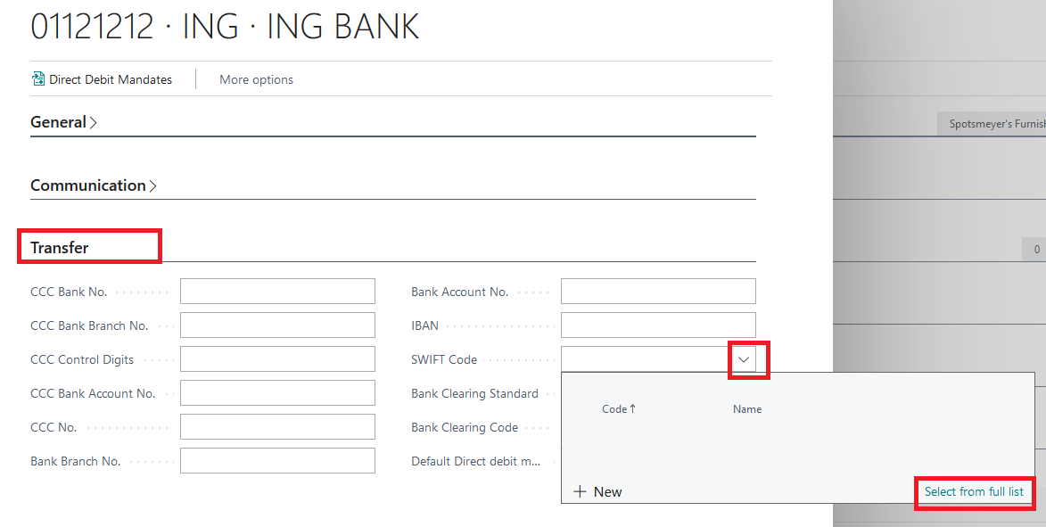 En Business Central tenemos la opción de configurar los códigos SWIFT para cada banco, de modo que, al crear cualquier cuenta bancaria de un cliente, se asignará automáticamente el código SWIFT.